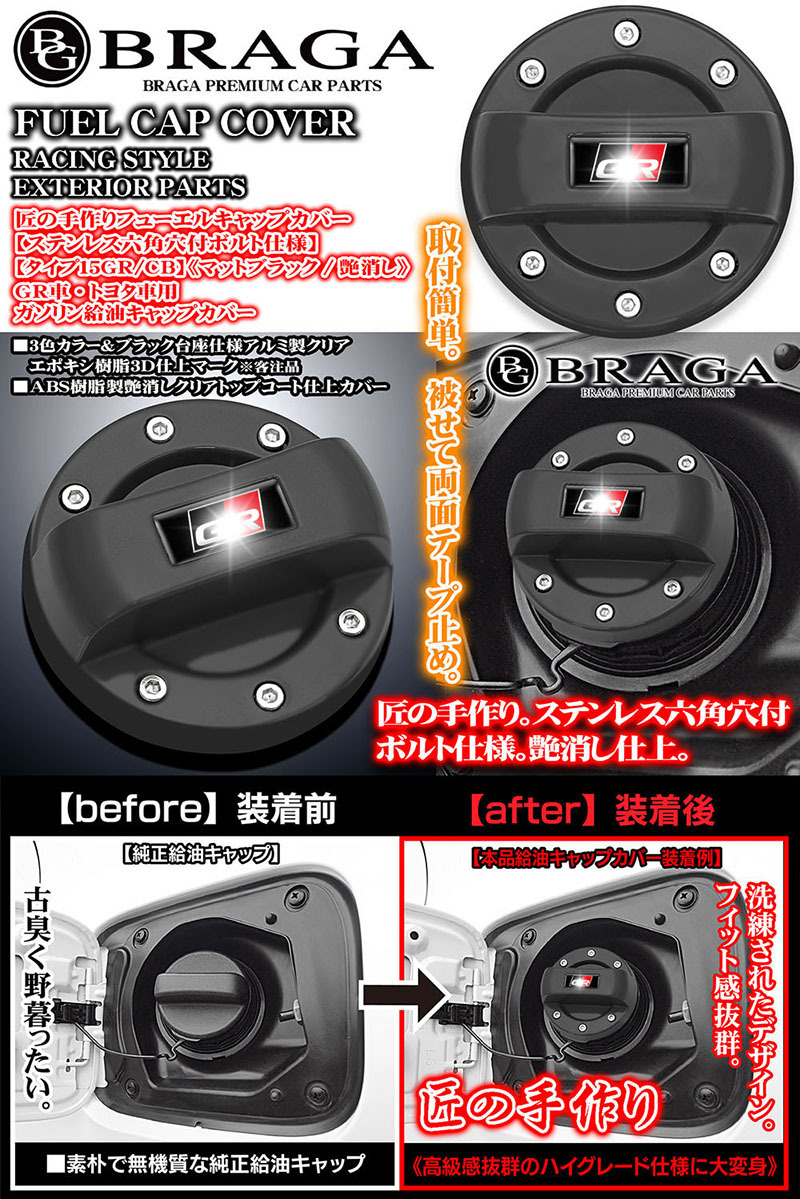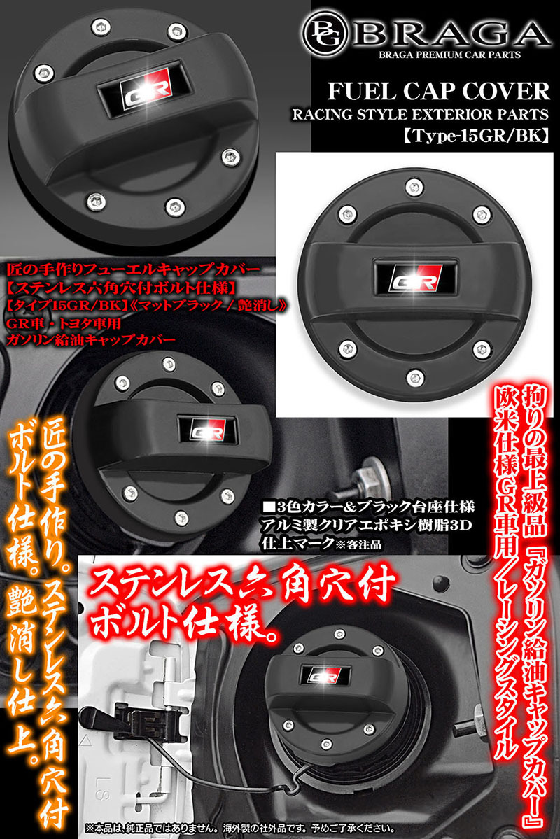 Product name: 匠の手作り[タイプ15GR/BK]トヨタ車/GR 互換品 給油 フューエル キャップ カバー[マットブラック]ステンレス 六角穴 ボルト/BG BRAGA