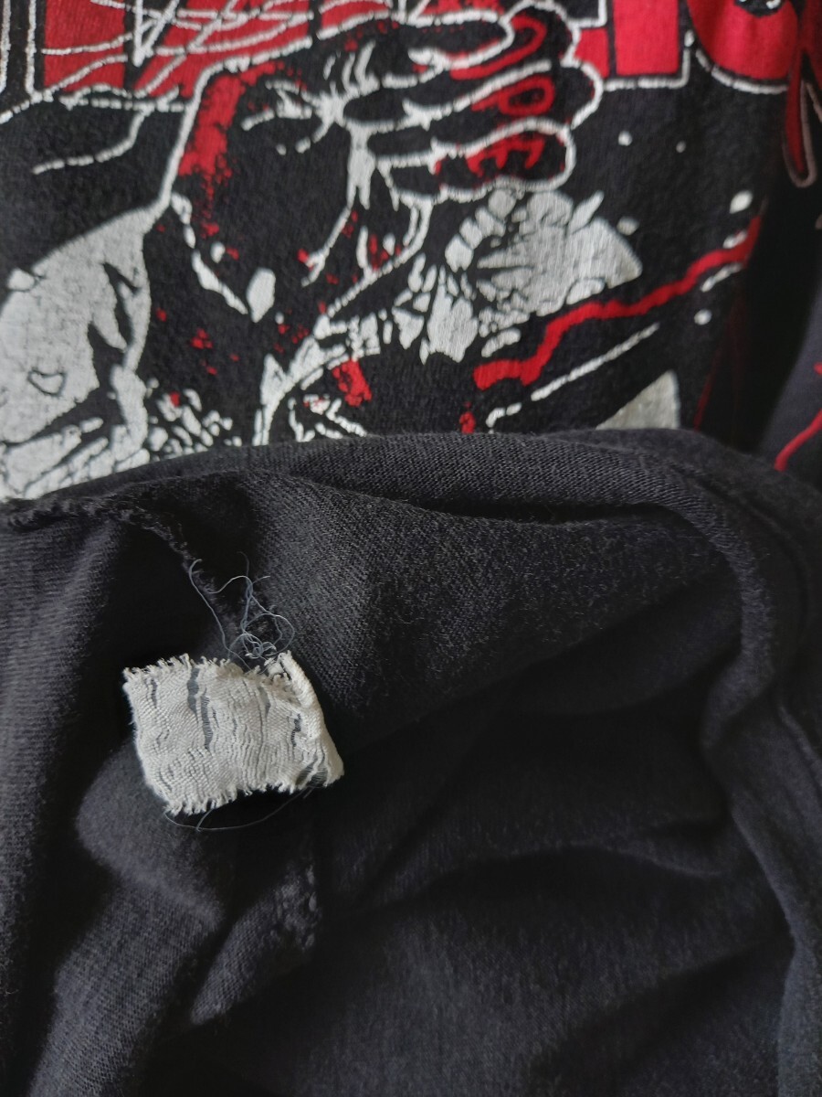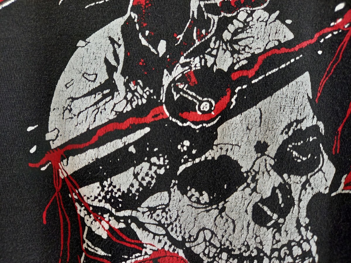 都内のEUROヴィンテージ古着屋で購入した90s 00s メタリカ ユーロ ビンテージ 古着店購入 スカル ブラック Tシャツ sizeXL 肩幅約50身幅約57着丈約64袖丈約18センチです。状態はビンテージなので多少の使用感などありますが、全体的に良い方かと思います。必ず当方の自己紹介欄を見てから質問、入札、落札してください。