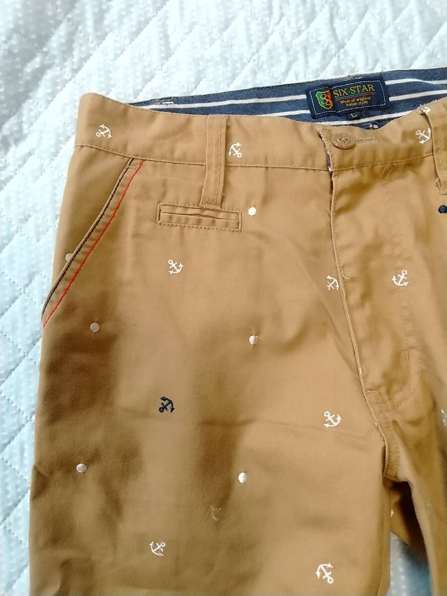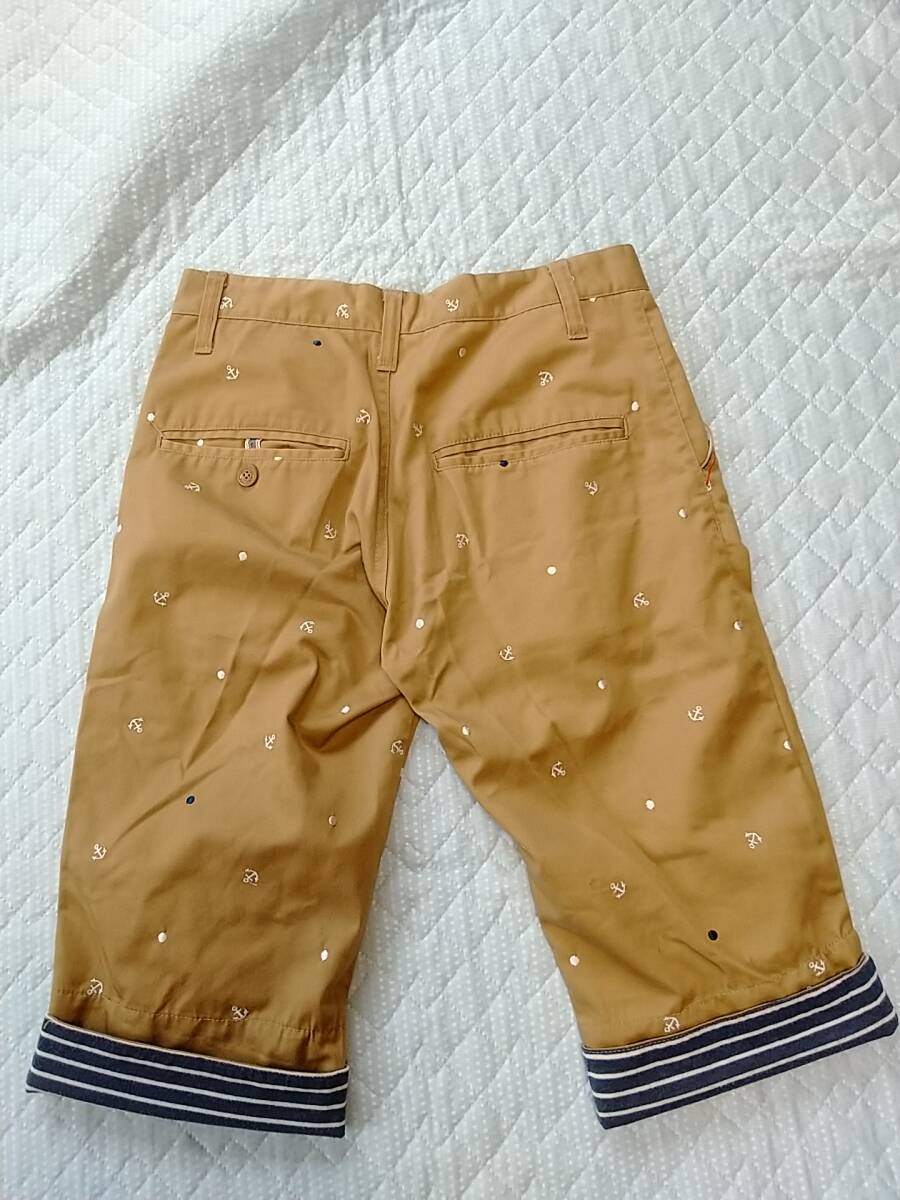 マリン柄のメンズハーフパンツです。サイズはウェスト80センチです。股下約42センチです。裾をすべて伸ばした状態です。お安く出品します。NCNRでお願い申し上げます。レターパック又はクロネコ発送予定です。