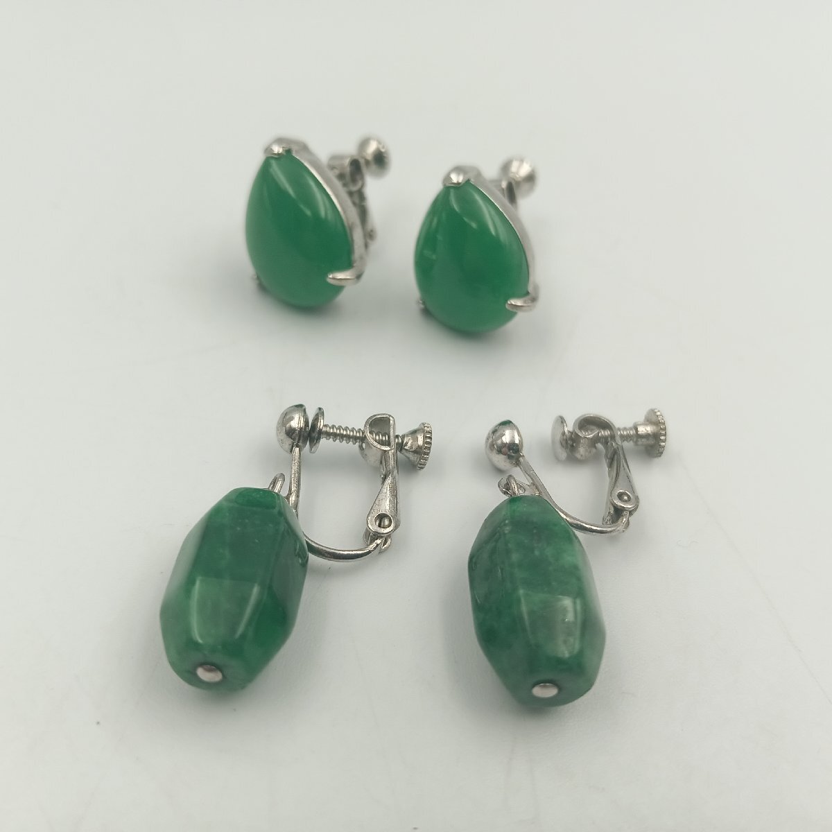 Product name: 1円 J022 イヤリング 緑石 エメラルド? 2点まとめ 重さ約8.4g 7.7g 銀色 アクセサリー ※要が属確認