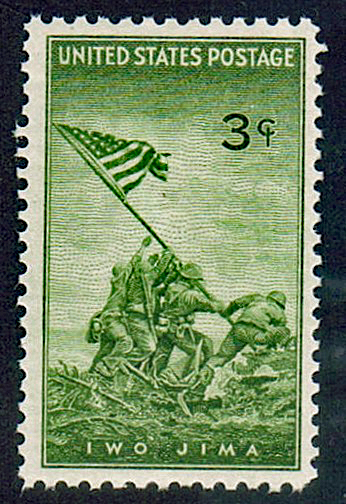 切手画面: 摺鉢山に星条旗を掲げr海兵隊員