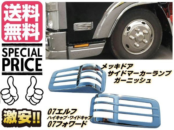 いすゞ 07 エルフ ハイキャブ ワイド 07 フォワード メッキ ドア サイド マーカー ランプ ガーニッシュ カバー 2t 4t トラック 送料無料/5