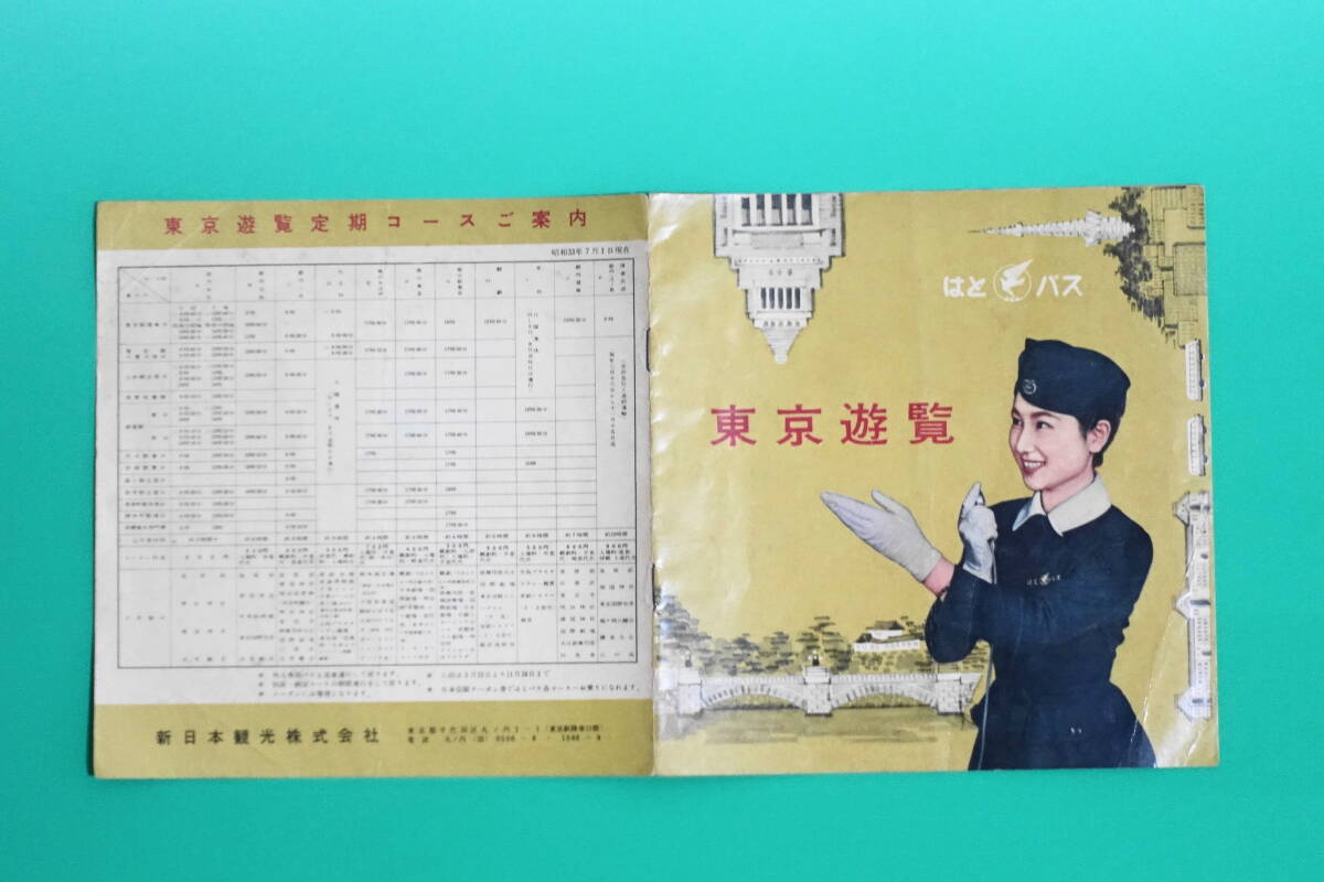 ■はとバス パンフレット 東京遊覧 昭和33年 新日本観光株式会社 名所案内 皇居/国会議事堂/東京駅/後楽園など  昭和レトロ