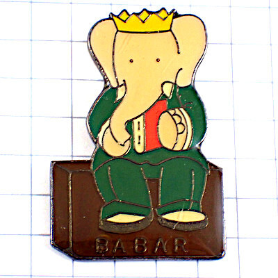 ピンバッジ・箱の上に座る絵本ぞうのババール BABAR◆フランス限定ピンズ◆レアなヴィンテージものピンバッチ