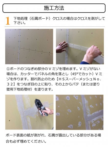 - 材質:炭酸カルシウム、消石灰、粉末ふのり、補強繊維(スサ)