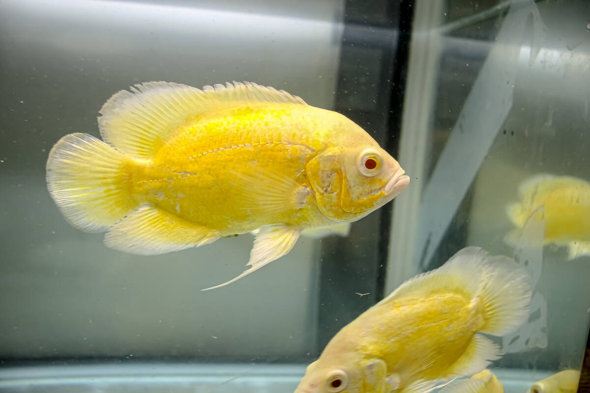新種!過背金龍のお供に!『 ウルトライエロー・オスカー 』14~15cm± 真っ黄色な極美個体! アロワナの目垂予防に推奨!