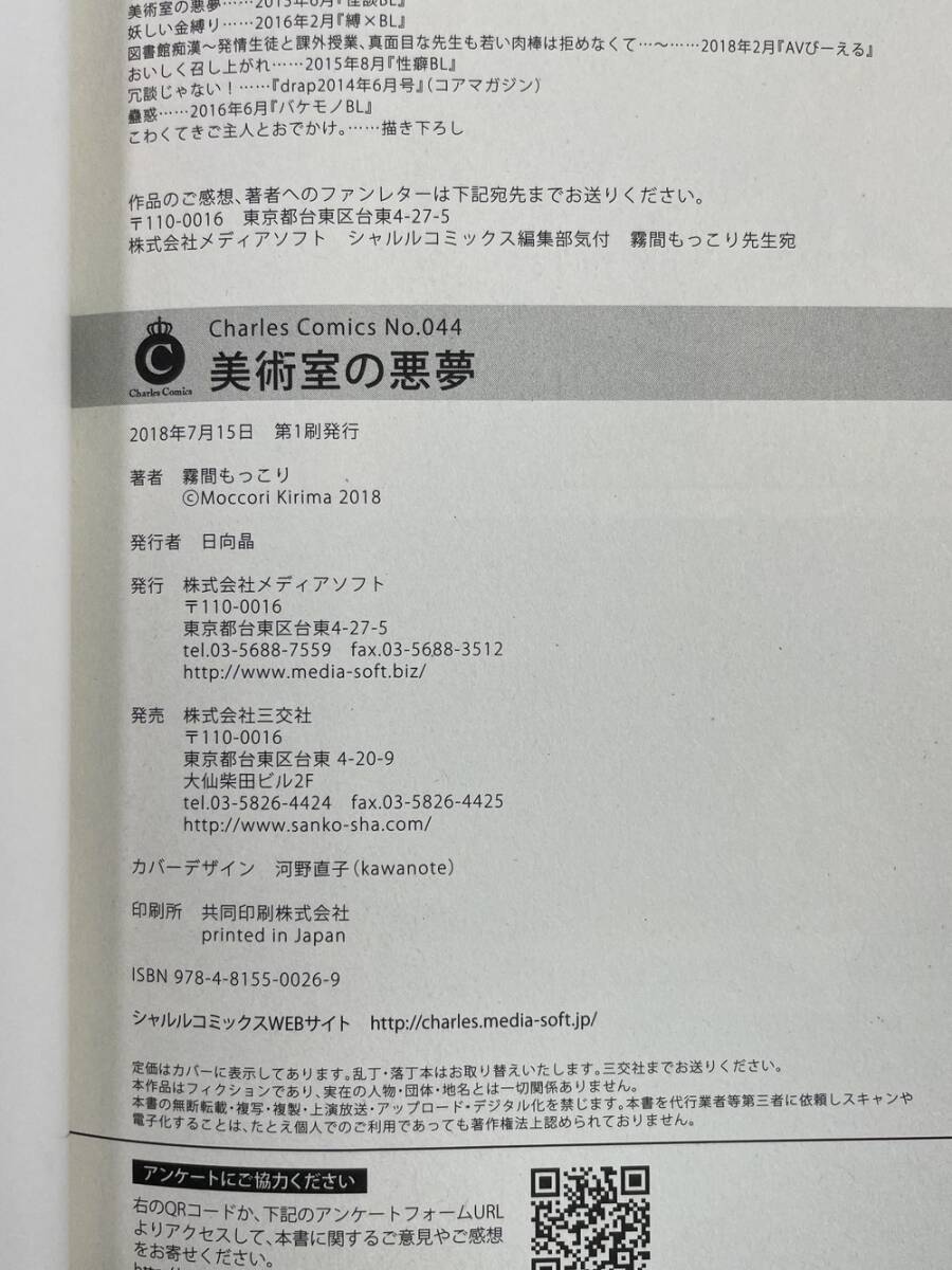 Product name: 美術室の悪夢 シャルルC霧間 もっこり著者 平成30年 2018年発行初版【K157484】
