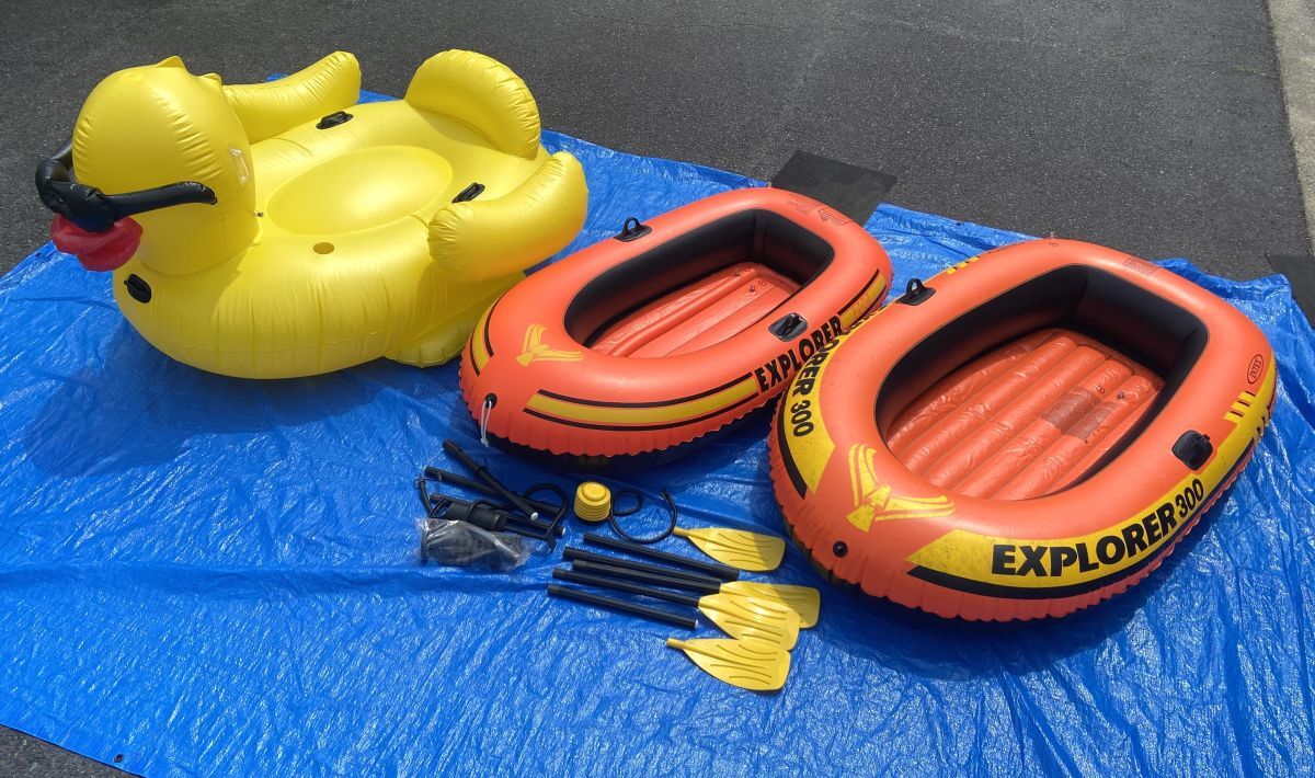 【M422】浮き具 3点セット ゴムボート エクスプローラー EXPLORER 300/200 オール付き 大型 アヒル 浮き輪 フロート プール 海水浴 海 b