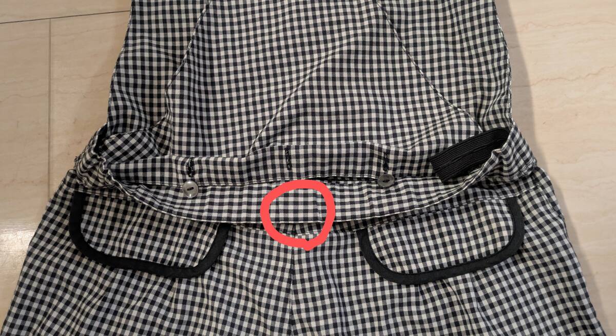 後ろの、上身頃とキュロットを合わせるボタンが、紛失しております。