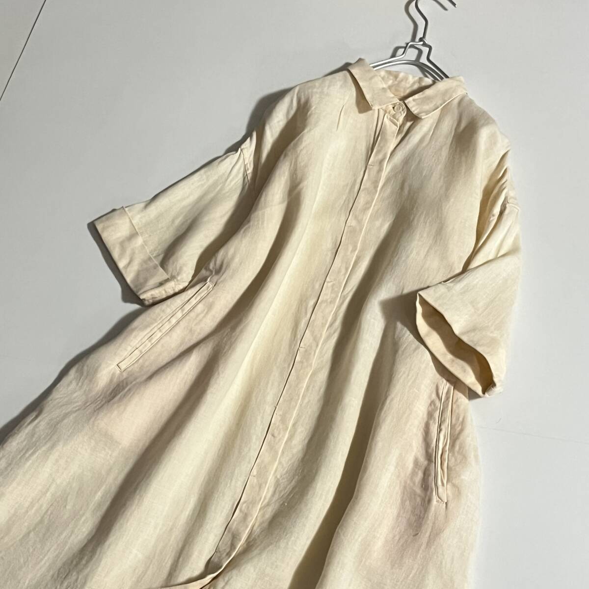 studio clip スタジオクリップ ゆったりサイズF // 麻・リネン100 淡いクリームオレンジ系 ロングブラウス・ワンピース ②