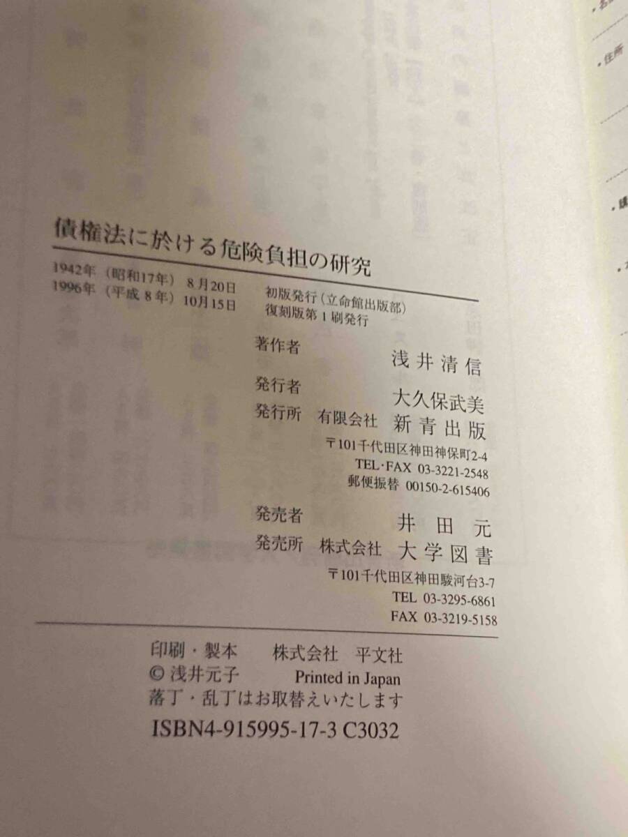 Product name: 債権法に於ける危険負担の研究 復刻版◆浅井清信、新青出版、1996年/X698
