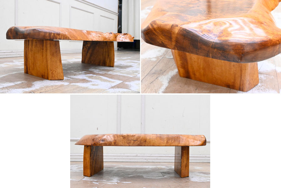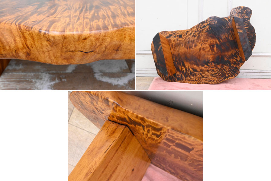 Product name: QD042 美品 最高級材使用 極厚 栃 トチ 無垢 金襴杢 虎杢 縮杢 一枚板 無垢 花台 飾台 オブジェ台 盆栽台
