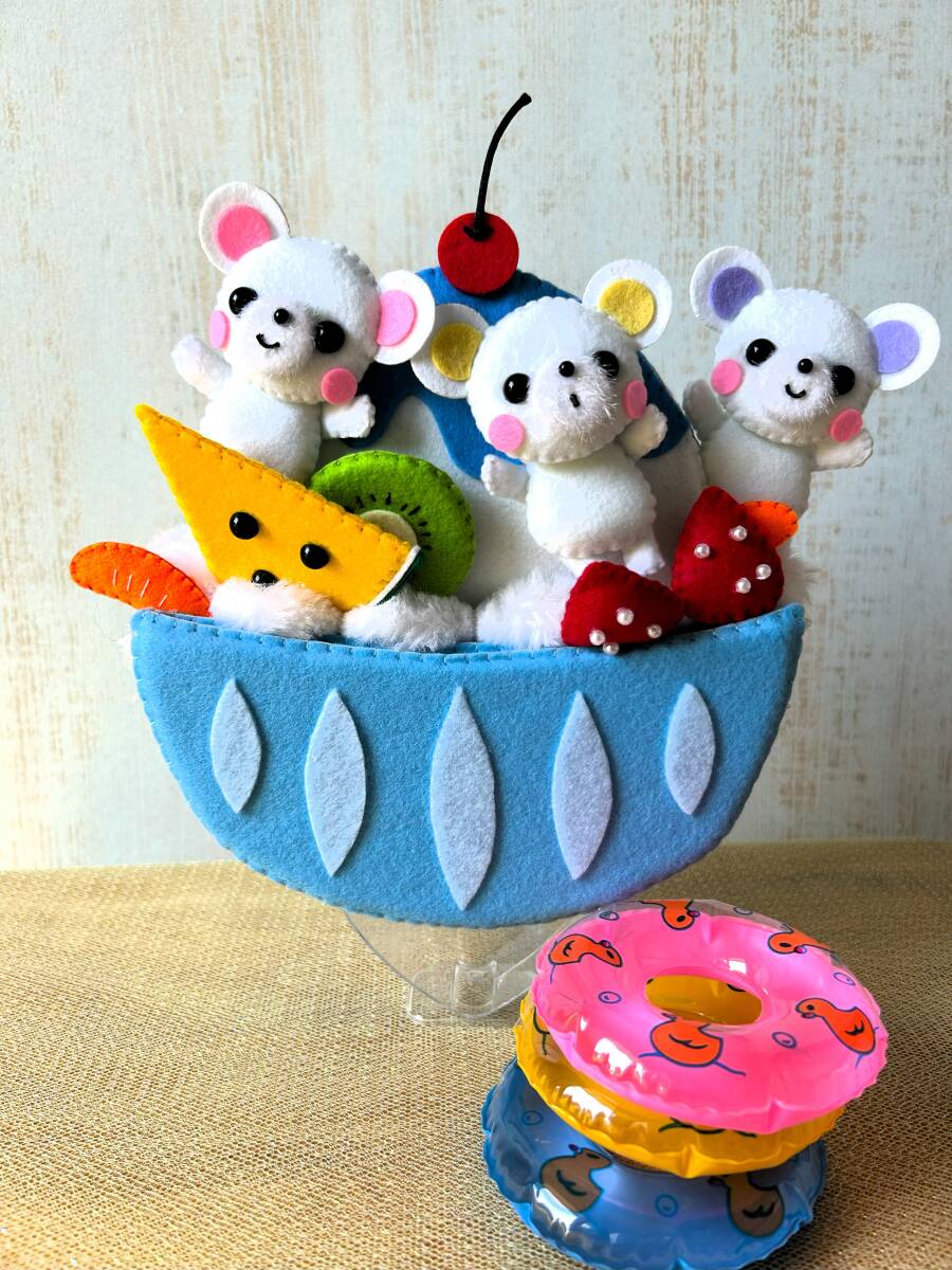 Product name: HAPPY*ハンドメイド*フェルト*インテリア*かき氷*置き飾り*飾り物*白くま*夏*フルーツ*スイカ*イチゴ*みかん*キウイ