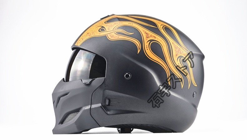 顎部分は着脱できます、フルフェイスからハーフヘルメットに変更できます。