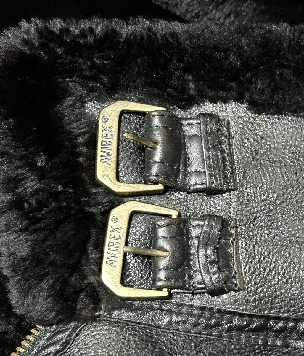 ■アビレックス米国製B-3黒(44)です。着用頻度が少なく新品に近い状態です。天然革製品ですので多少の色ムラはありますが革質は柔らかく着やすいです。ジップの動きも問題ありません。