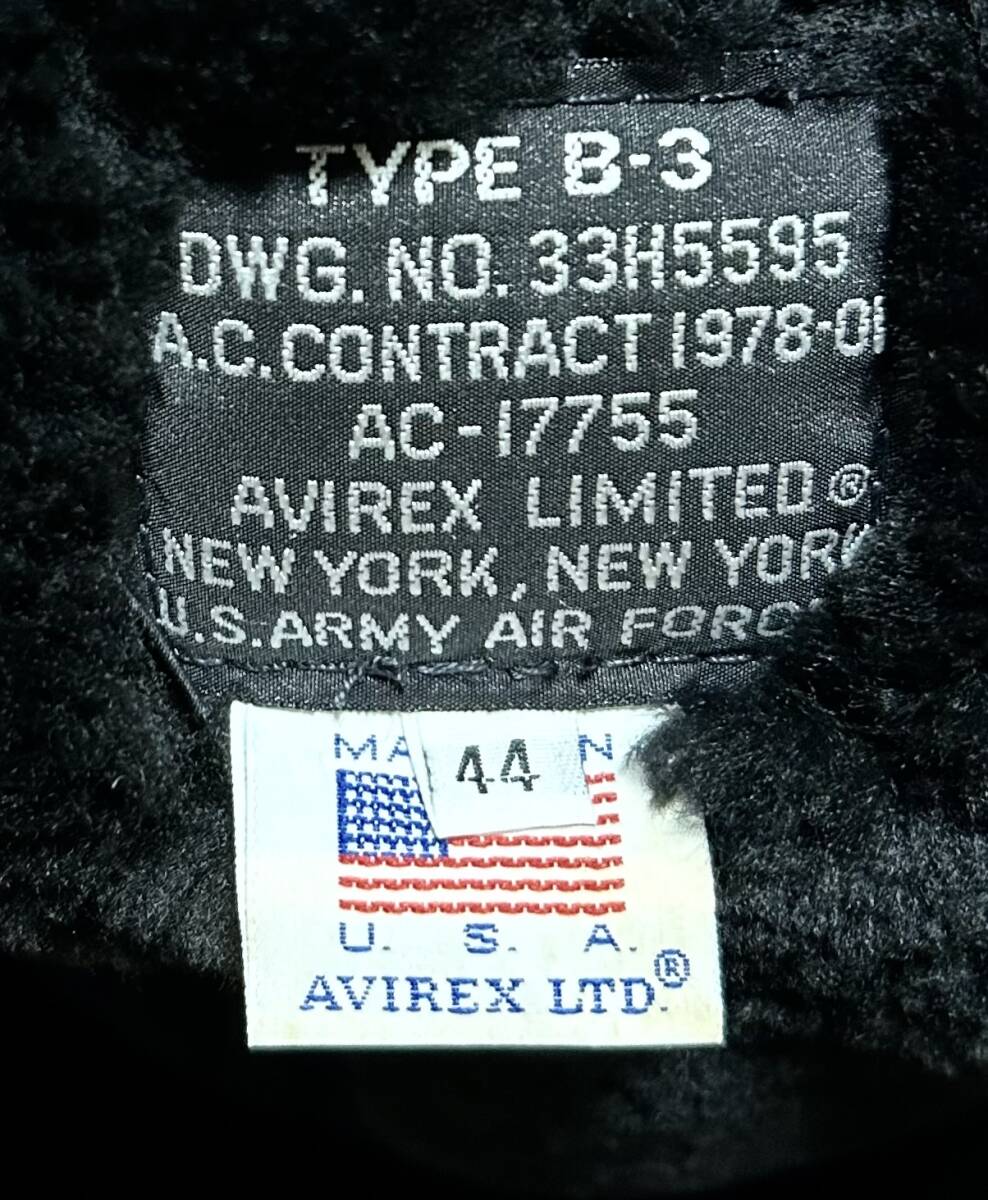 Product name: 新同品⑥AVIREX【44】B-3 黒 米国製レザーMA-1◇TOPGUN アヴィレックス gpz アビレックス ハーレー★匿名配送★ショベル HARLEY 革ジャン