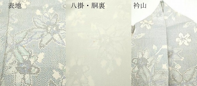 状態は接写画像のように表地所々・八掛・胴裏・衿山に汚れがございます。