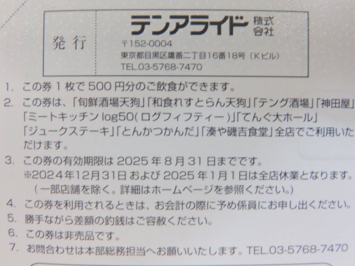 ② てんぐ大ホール、テング酒場、湊や磯吉食堂などで利用可 テンアライド株主優待券 5000円分 有効期限2025年8月31日まで