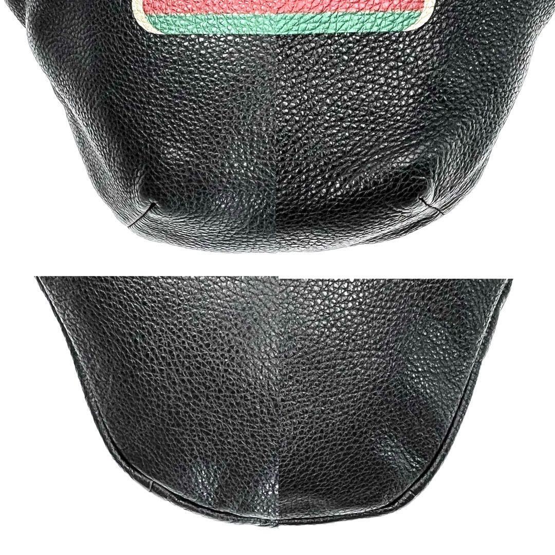 《美品》GUCCI グッチ シェリーライン ヴィンテージ ロゴ レザー ボディバッグ ウエストポーチ ブラック 斜め掛け