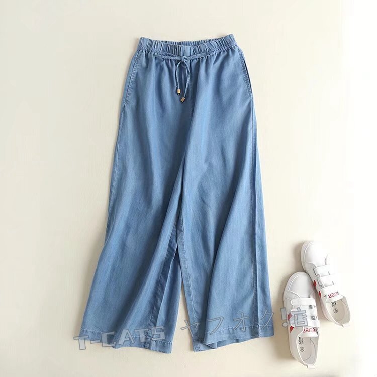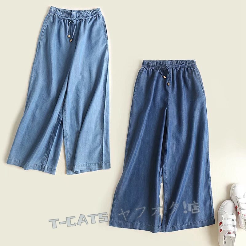 Product name: 新品☆夏物 ワイドパンツ ガウチョパンツ デニムパンツ ワイドパンツ ガウチョパンツ デニムパンツロング丈 ボトムス ウエストゴム