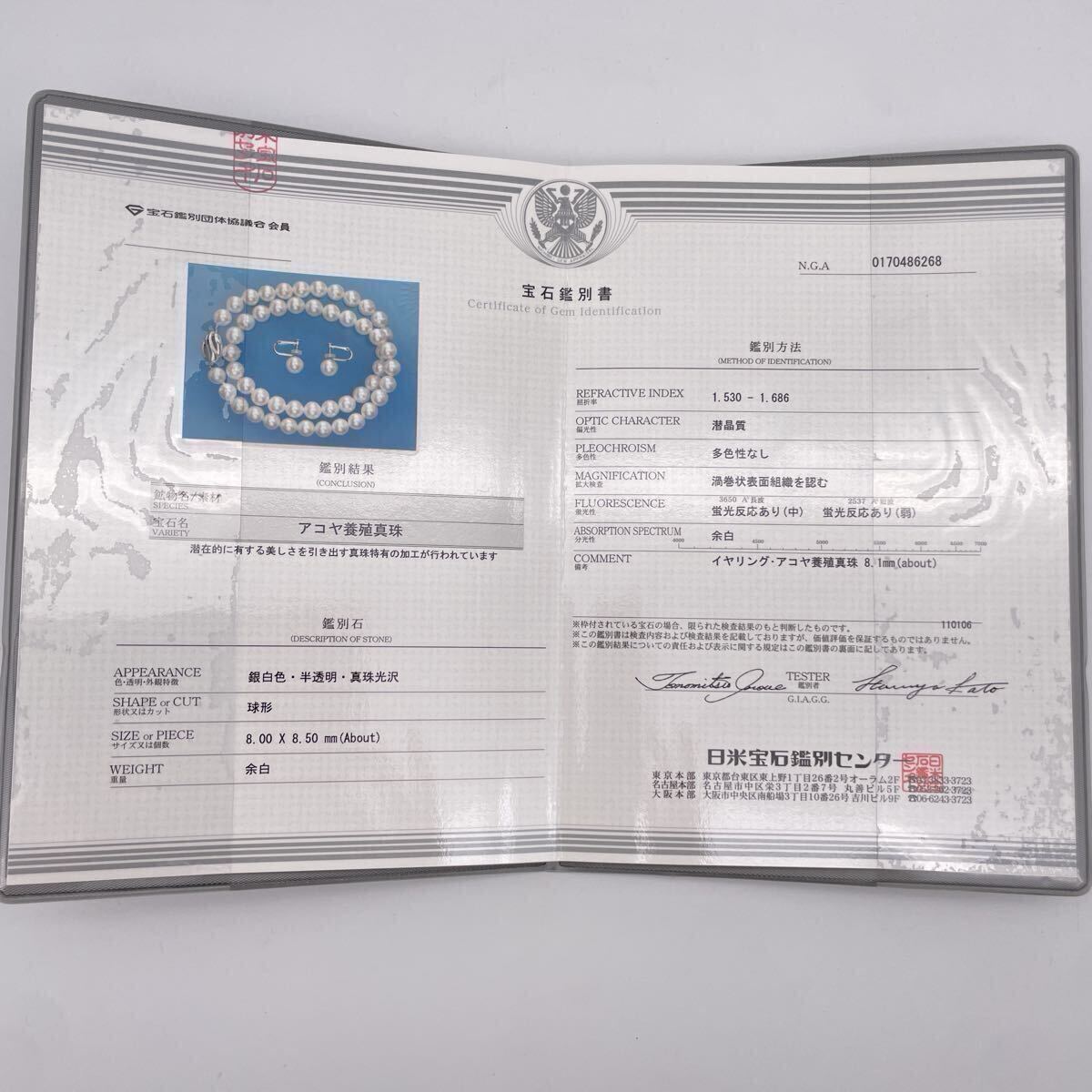 Product name: ● アコヤ 本真珠ネックレス/K14WGイヤリング セット 8.0〜8.5mm 50珠 42.9g 鑑別書付き ● パール 金 SILVER アクセサリー