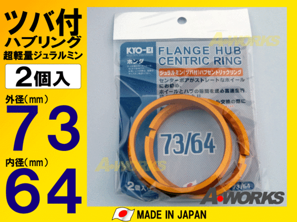 協永 ツバ付 ハブリング 【U7364】 外73φ内64φ U7364 2個入 ホンダ 5H PCD114.3