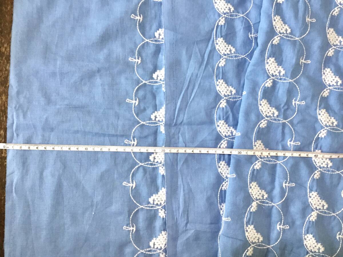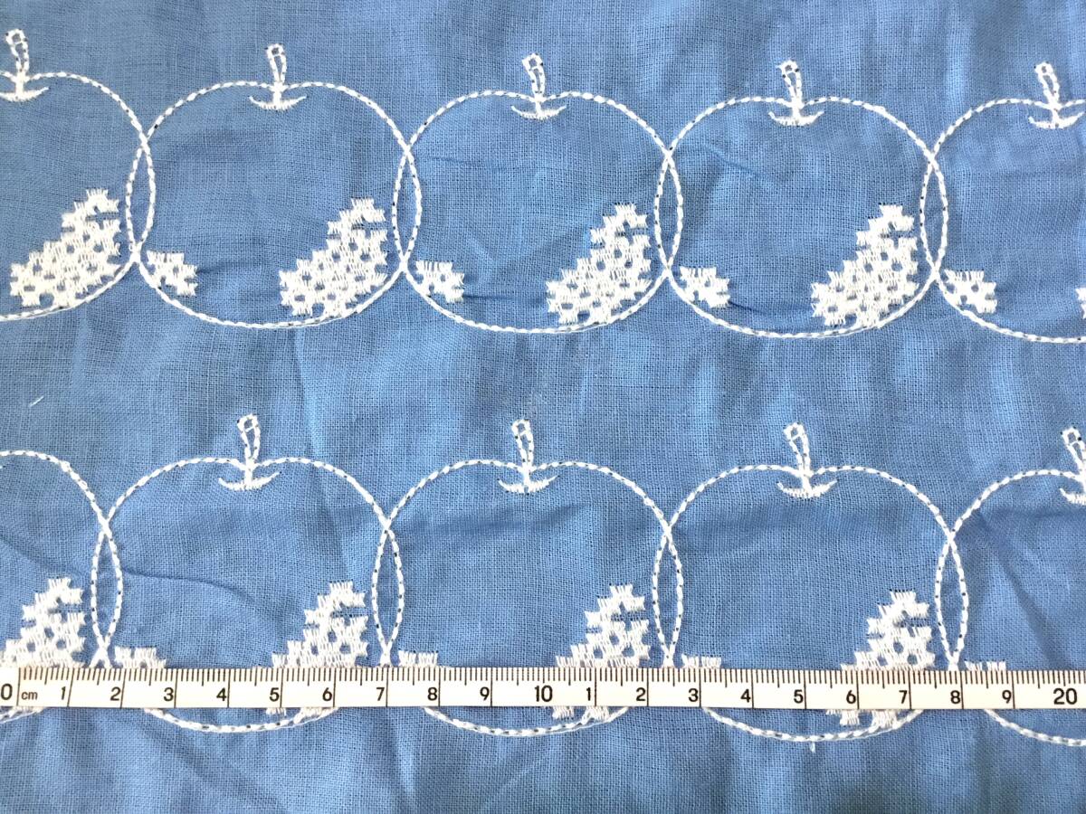 刺繍生地・綿リネン・りんご・爽やかな薄青