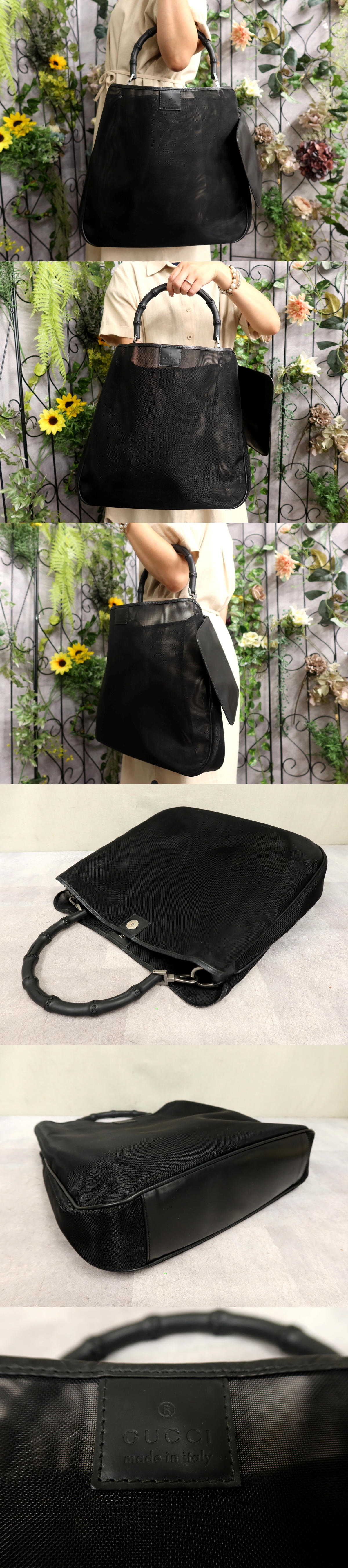 Product name: 超美品●GUCCI グッチ●バンブー●ロゴ型押し●メッシュ ナイロン カーフ レザー 本革●ハンド バッグ●黒●イタリア製●A4 収納●Js59316
