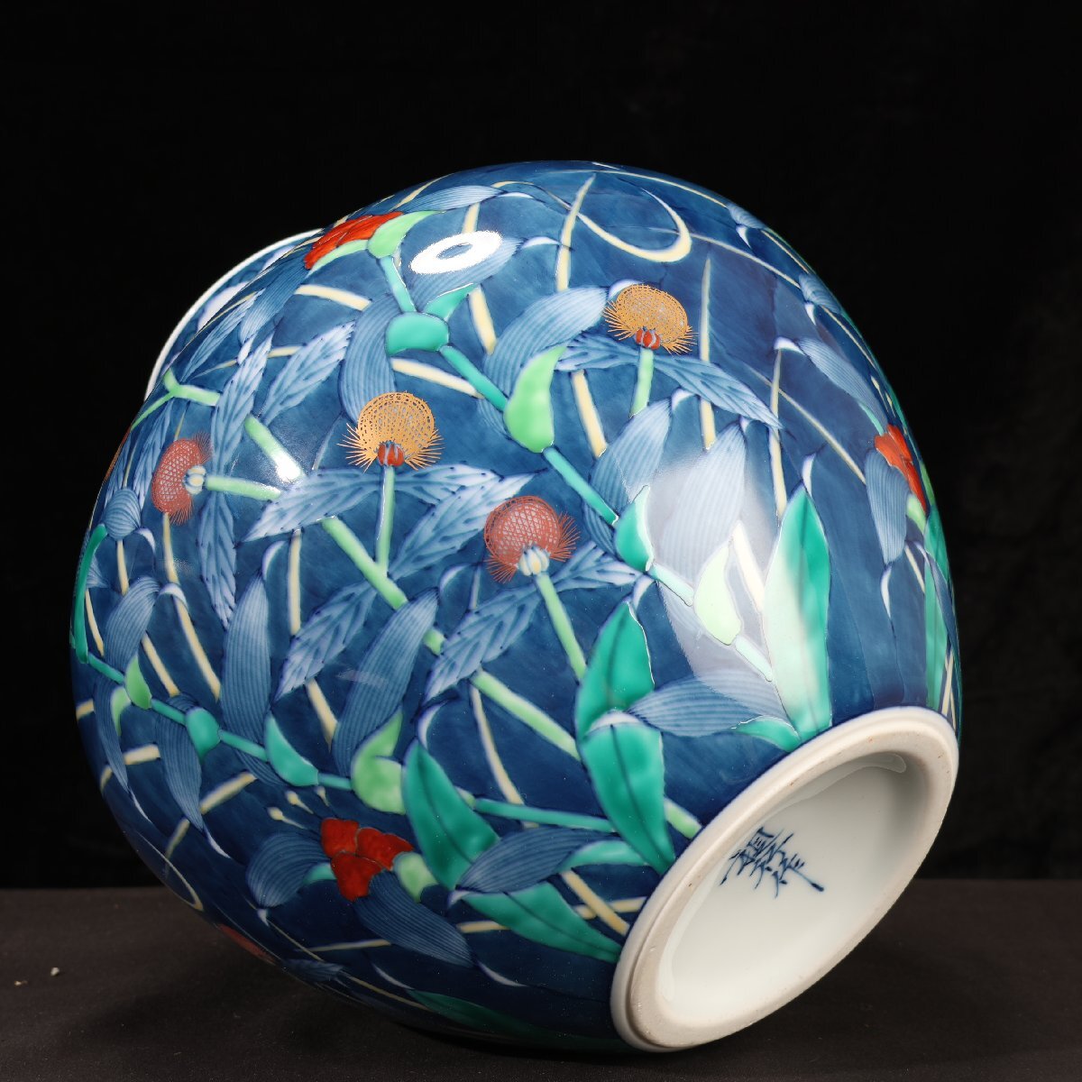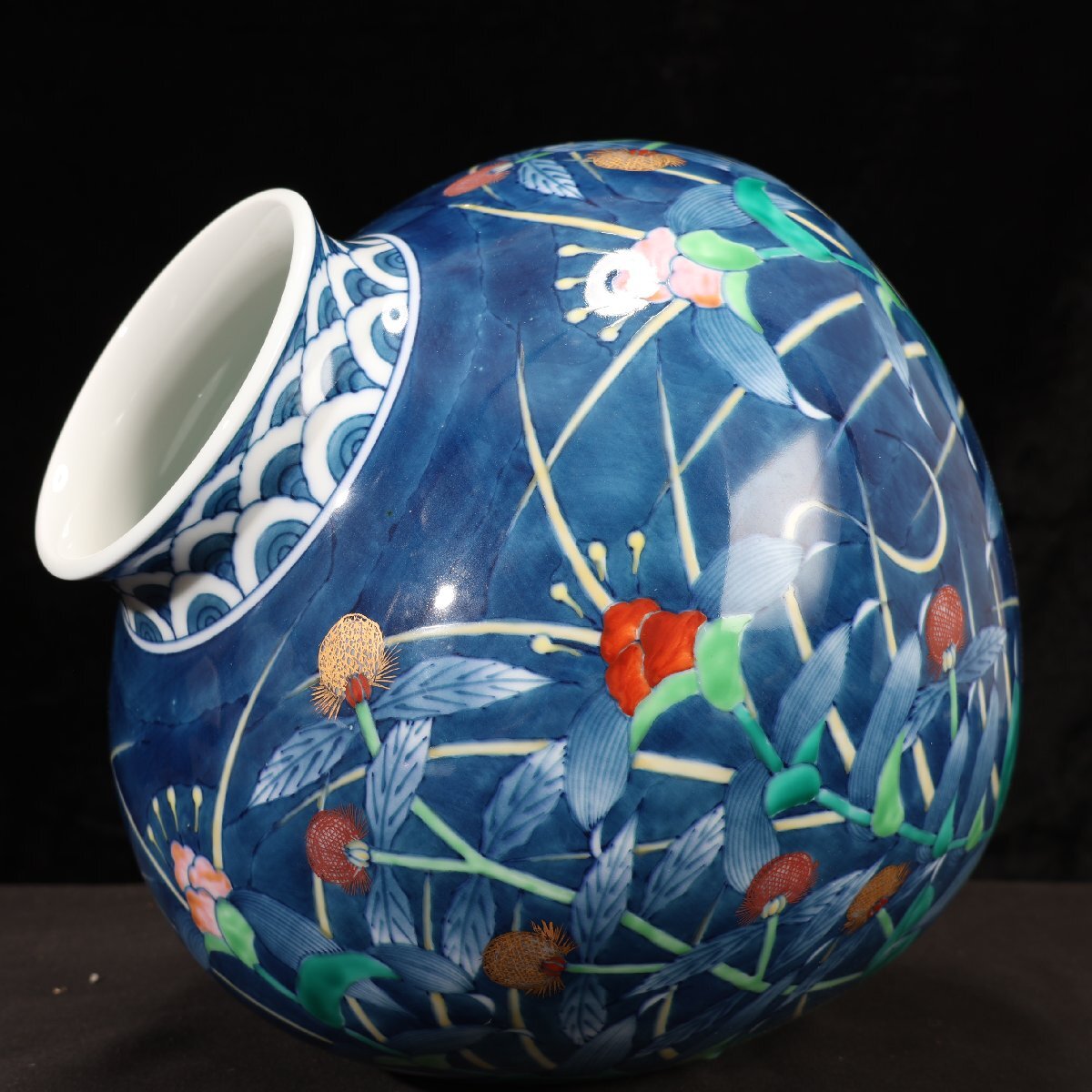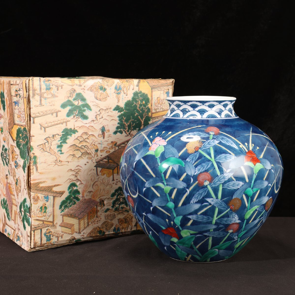 Product name: 【珍品堂】1円から G25-V01有田焼 視行作 染錦花草紋 花瓶 箱付 飾壺 時代物 古美術 骨董品 アンティーク 昭和レトロ