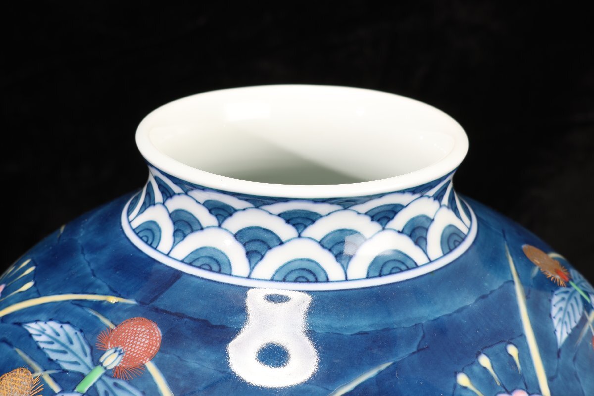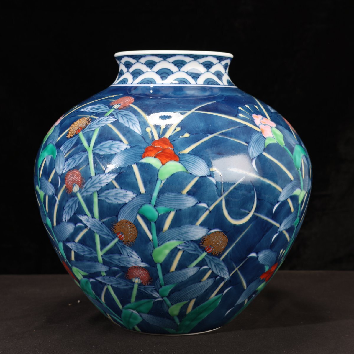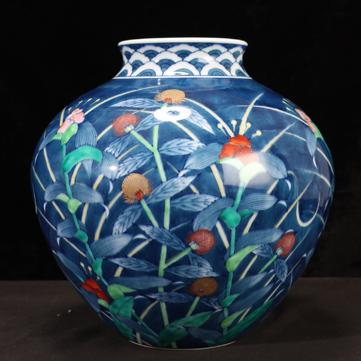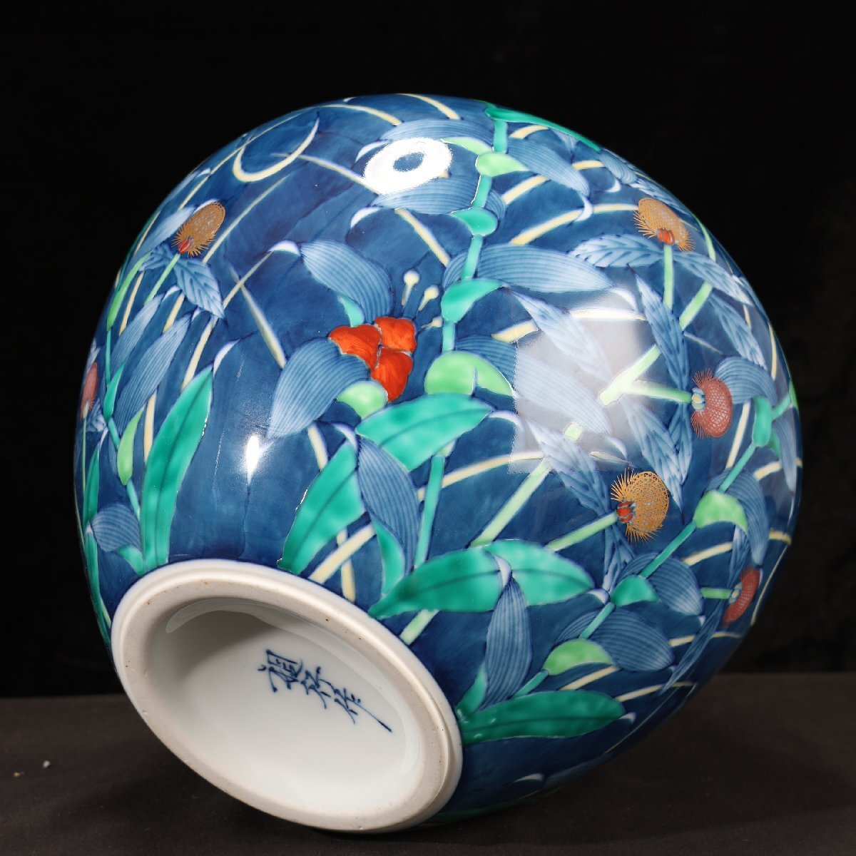 Product name: 【珍品堂】1円から G25-V01有田焼 視行作 染錦花草紋 花瓶 箱付 飾壺 時代物 古美術 骨董品 アンティーク 昭和レトロ