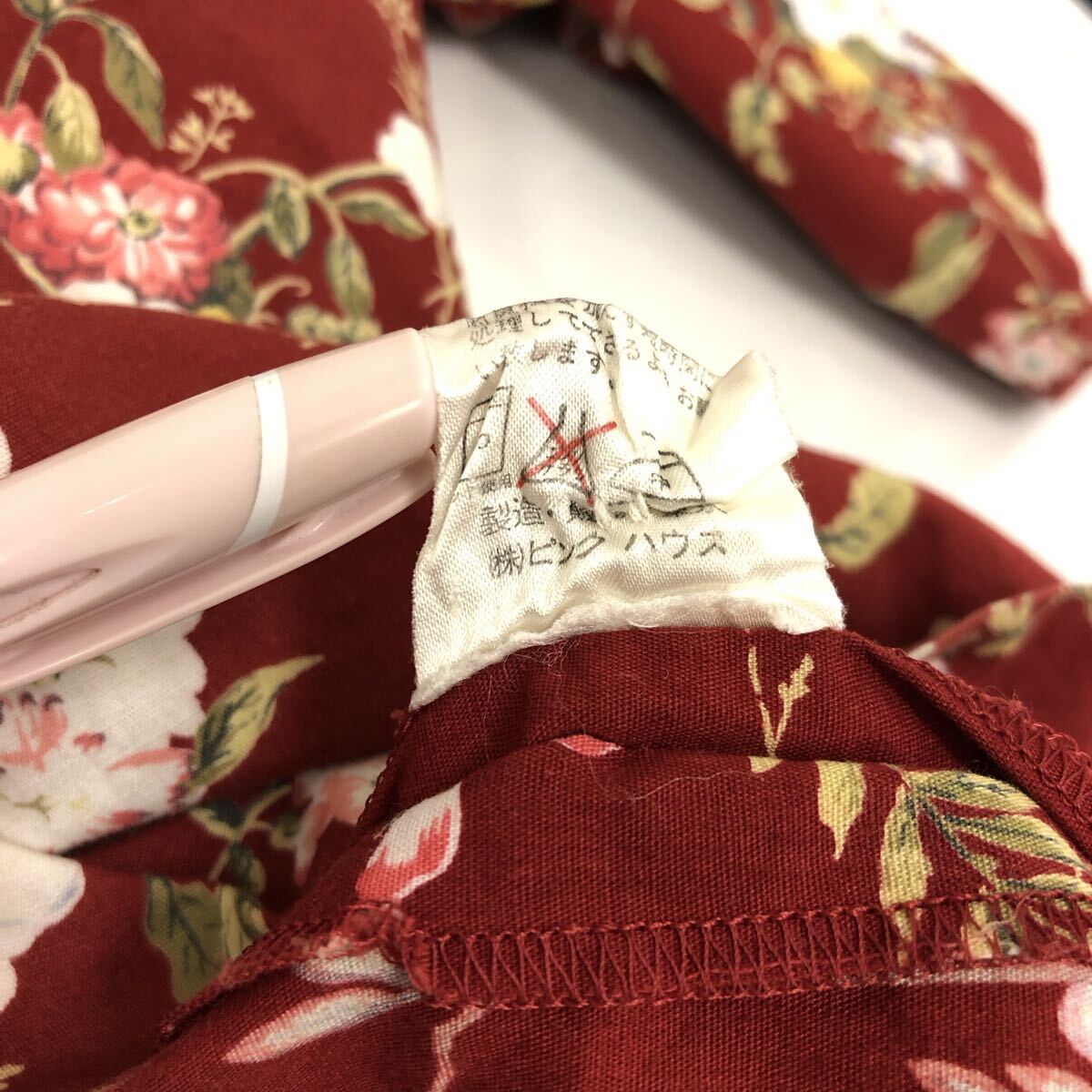 Product name: PINK HOUSE ピンクハウス フラワー ノーカラーシャツ ワンピース 半袖 花柄 ロング丈 古着 レッド コットン レディース ロング リボン