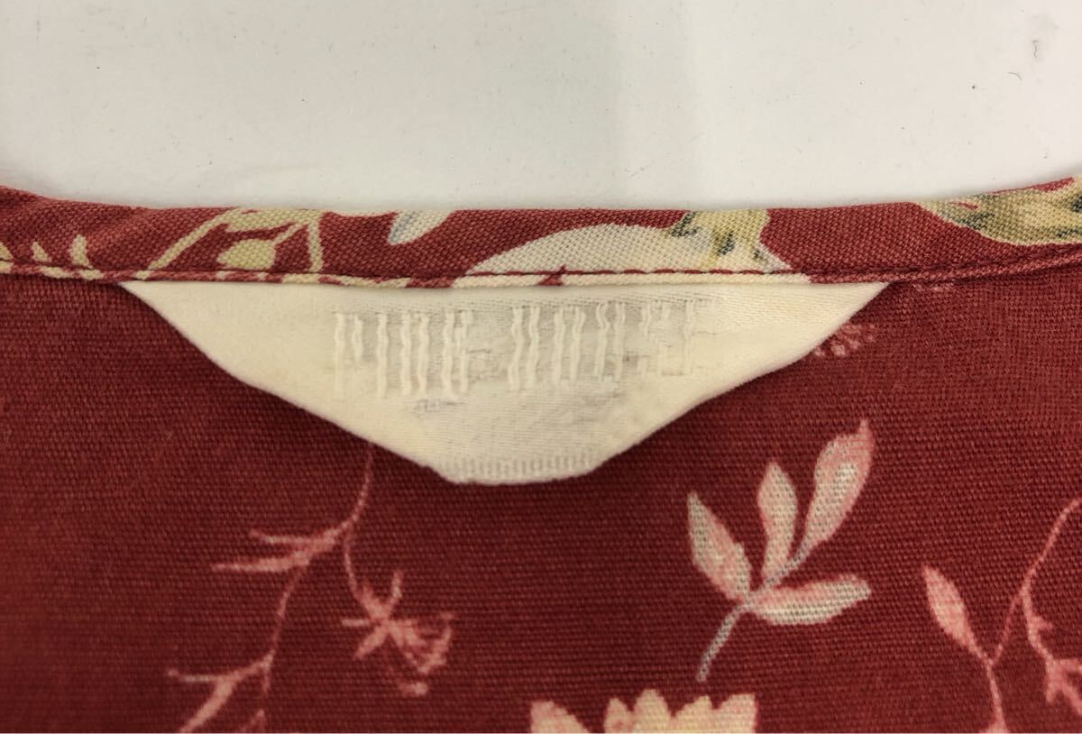 PINK HOUSE ピンクハウス フラワー ノーカラーシャツ ワンピース 半袖 花柄 ロング丈 古着 レッド コットン レディース ロング リボン