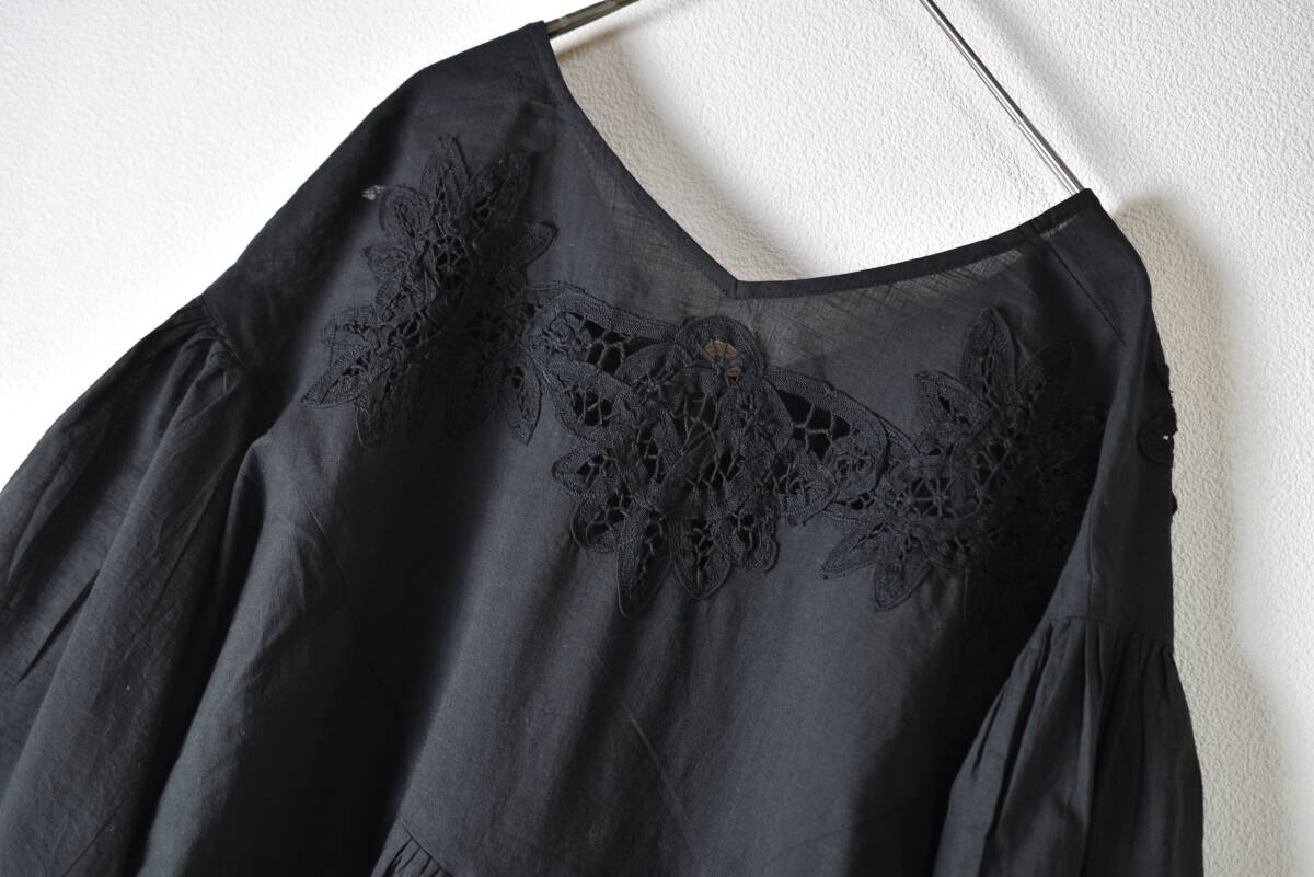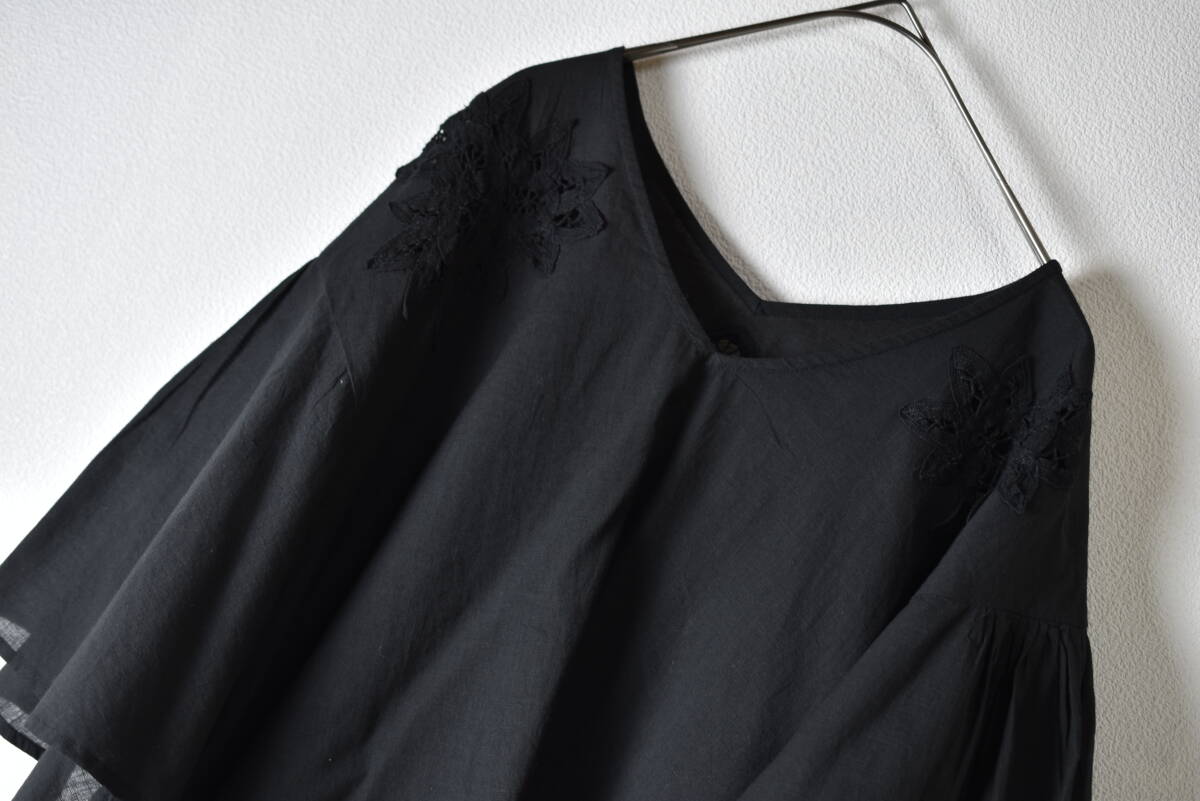 Product name: ビアズリー BEARDSLEY カットワークレース付きVプルオーバーブラウス チュニック丈 黒色