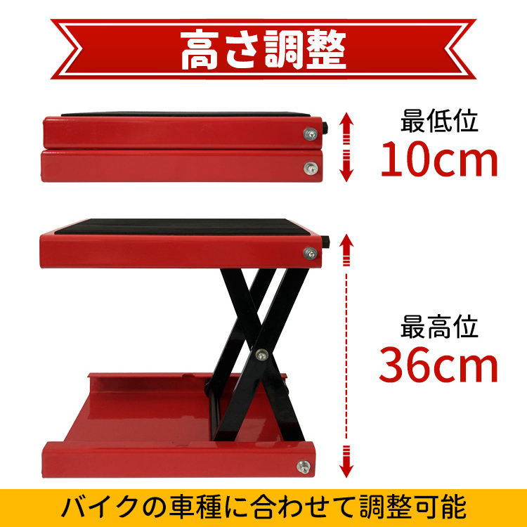 1円 リフト バイク ジャッキ バイクリフト バイクジャッキ 高さ調整 10-36cm 重量 耐荷重 500kg 大型対応 バイクスタンド バイク用品 ee319