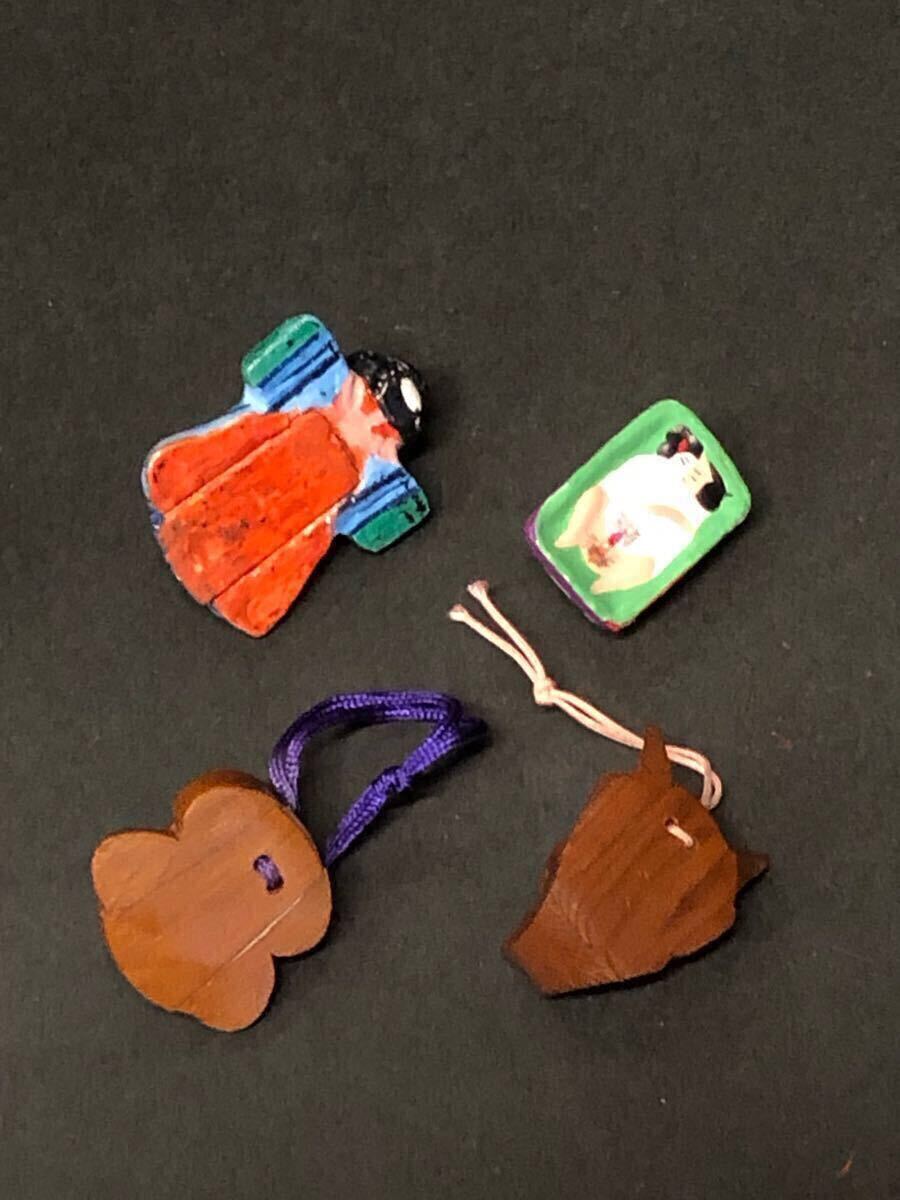 春画 小物 置物 男女 猫 般若 大黒木彫根付? ミニチュア 4点 3から4センチ