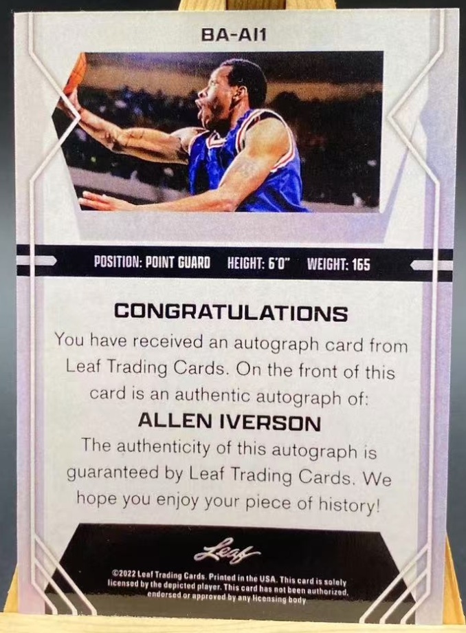 Product name: Allen Iverson アレン・アイバーソン Leaf 2022-2023 Autograph Auto サイン 直筆 セブンティシクサーズ 76ers