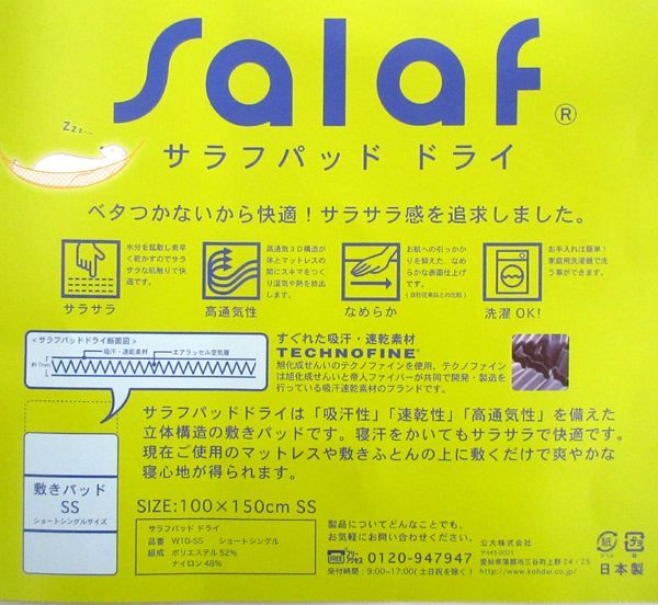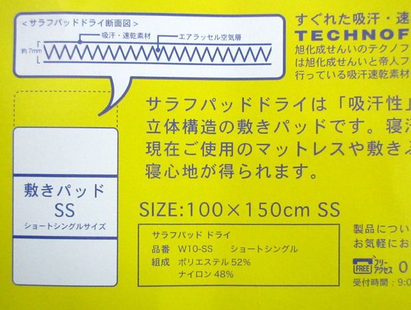 内 容 ■Salaf サラフ 敷きパッド ドライ ショートシングル(W10-SS)