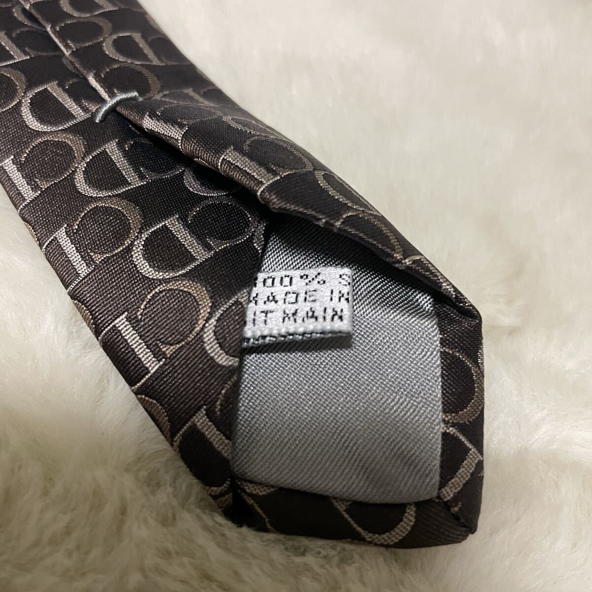 1円スタート! 未使用級 Christian Dior ディオール CD ロゴ シルク100 ネクタイ 総柄 ブラウン 光沢 フランス製 ビジネス レギュラータイ