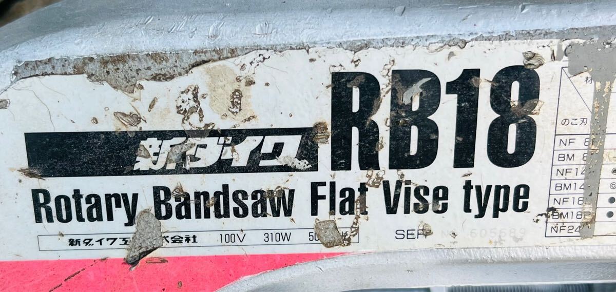 Product name: SHINDAIWA 新ダイワ ロータリバンドソー RB18 フラットバイス 鉄工 帯鋸切断機 100V 50/60Hz 動作確認済み