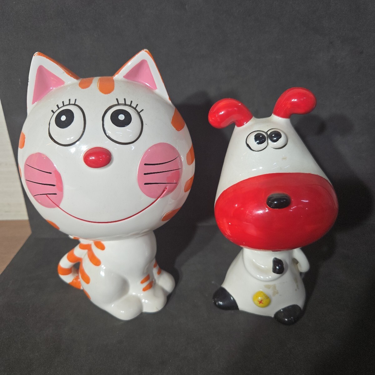 希少 内藤ルネ RUNE ネコ 陶器製 貯金箱 昭和レトロ キジトラ 赤耳 犬 昭和レトロ ヴィンテージ 当時物