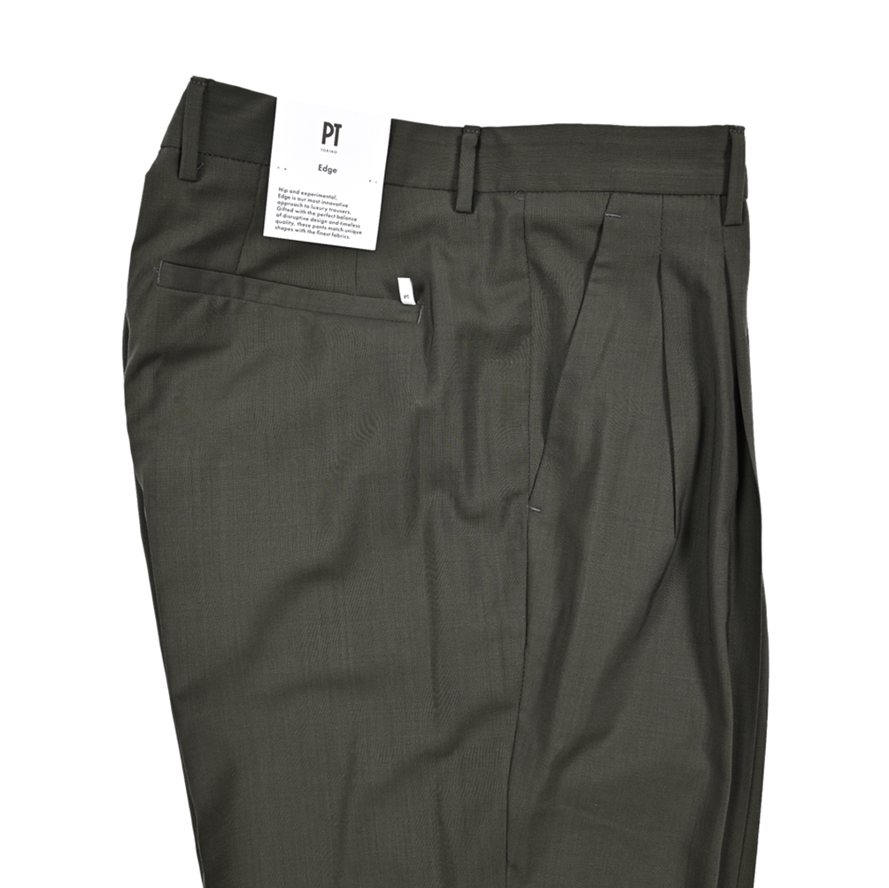 ピーティートリノ PT TORINO EDGE エッジ DICIANNOVE ディチャンノーヴェ スラックス ツータック パンツ 春夏 秋 3シーズン メンズ SUPER 130'S ヴァージンウール 100% カーキグリーン PT01