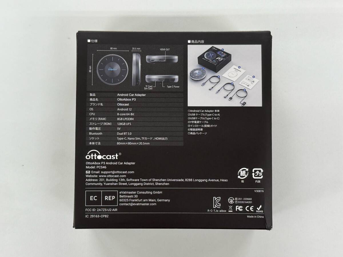 Product name: オットキャストOttocast OttoAibox P3 Android12 CarPlay AI Box【付属品あり】新型エアマウスリモコンセット