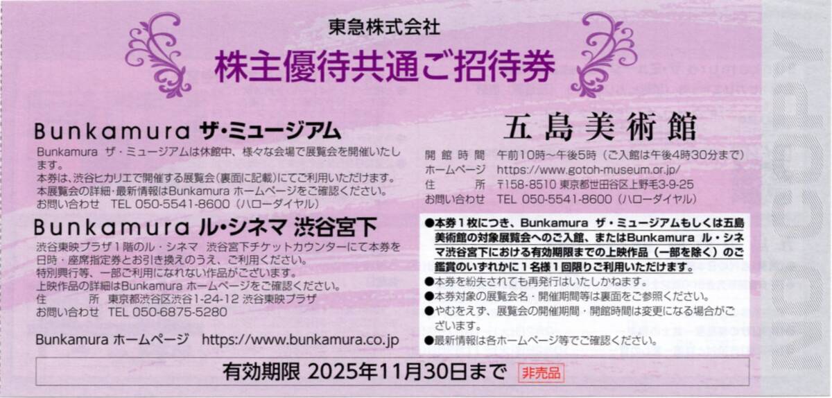 東急電鉄の株主優待券のBunkamura ザ・ミュージアム/Bunkamura ル・シネマ渋谷宮下/五島美術館の共通招待券です。