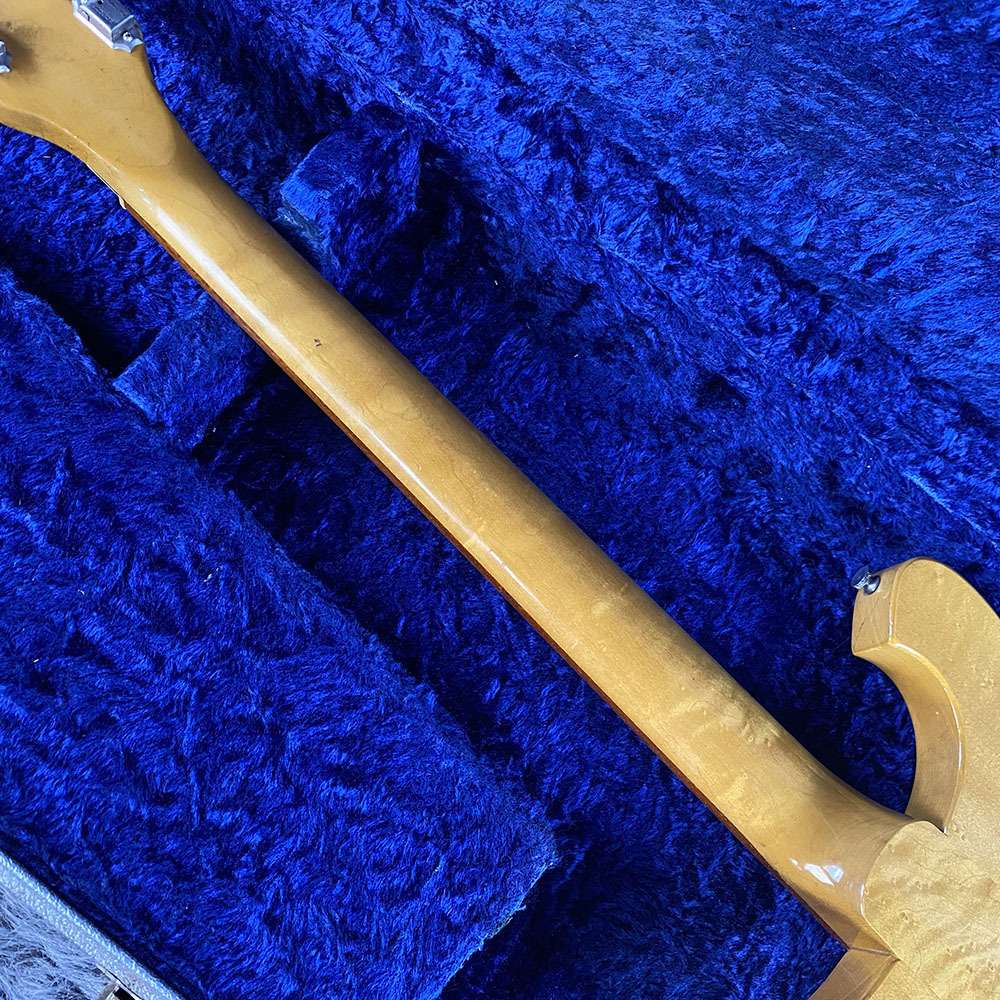 ネック材、ボディセンターのメイプル材は綺麗なバーズアイが出ており美しいルックスです。