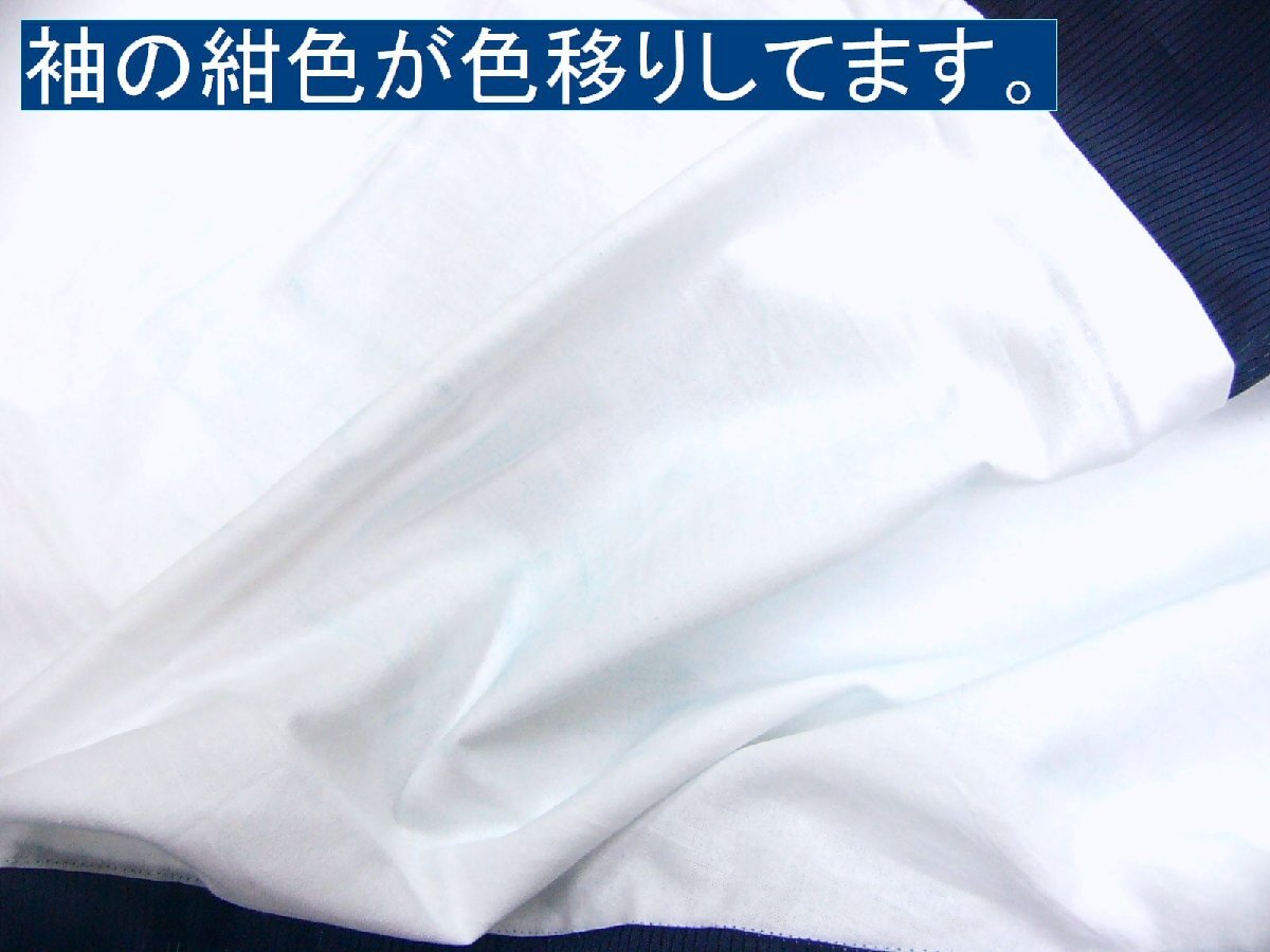 伺ったお話ですと難は化学変化で袖の紺色が身頃や入れてあるビニール袋に色移りしたことだそうです。