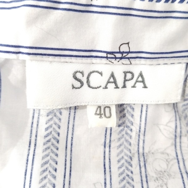 スキャパ Scapa 長袖シャツブラウス サイズ40 XL - ライトグレー×ネイビー×黒 レディース 花柄/ストライプ/フリル 美品 トップス