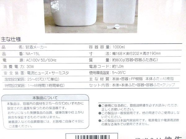 Product name: 送料300円(税込)■uy009■仲佐 甘酒メーカー 甘酒のき・も・ち NA-15L 3点【シンオク】
