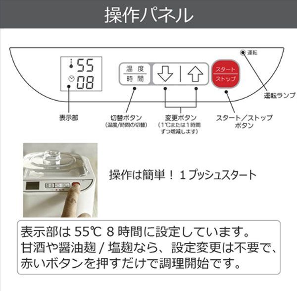●温度管理はおまかせ「おいしい甘酒」が簡単にできる