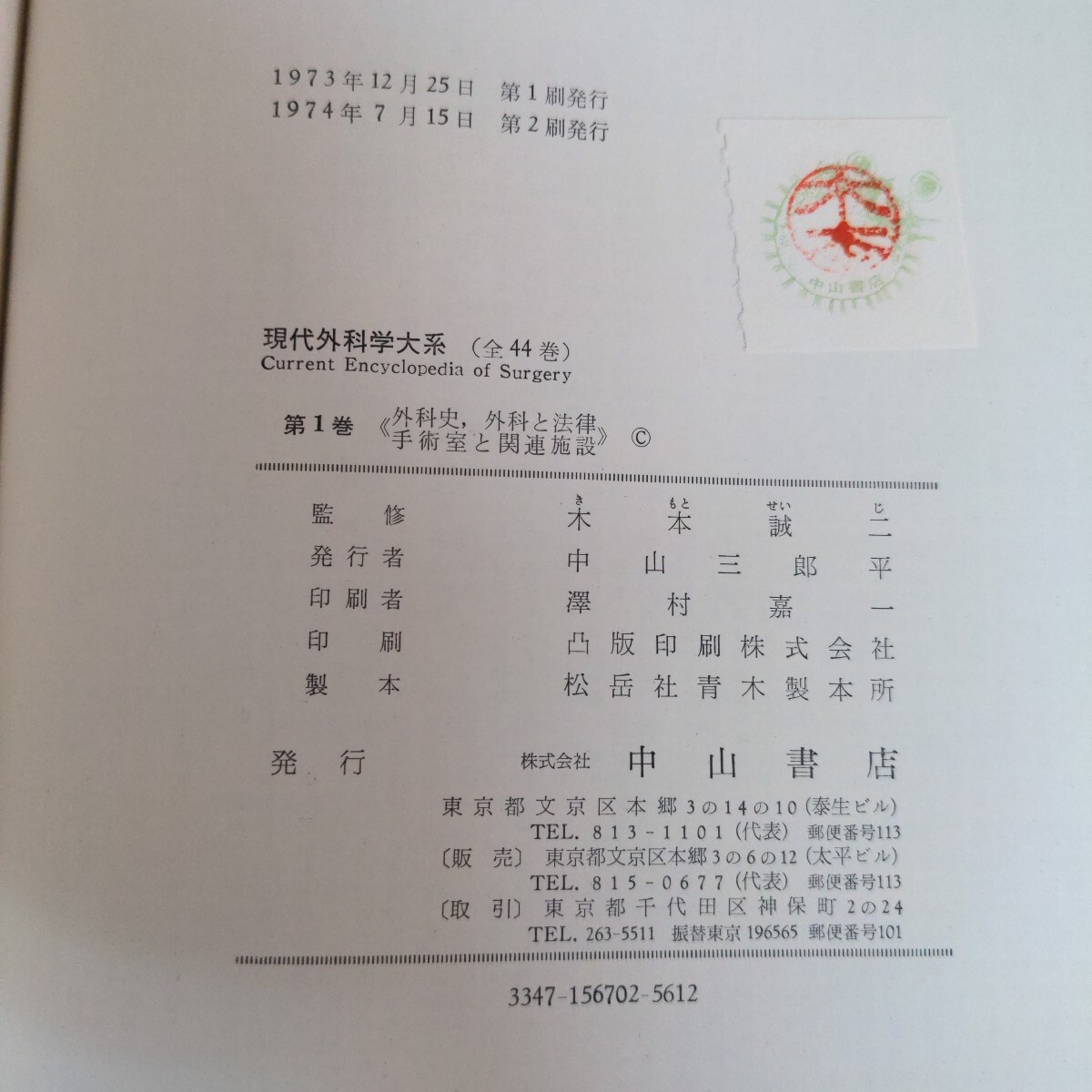 Jf-146/現代外科学大系1 外科史 外科と法律 手術室と関連施設 1974年7月15日第2刷発行 中山書店/L2/70820