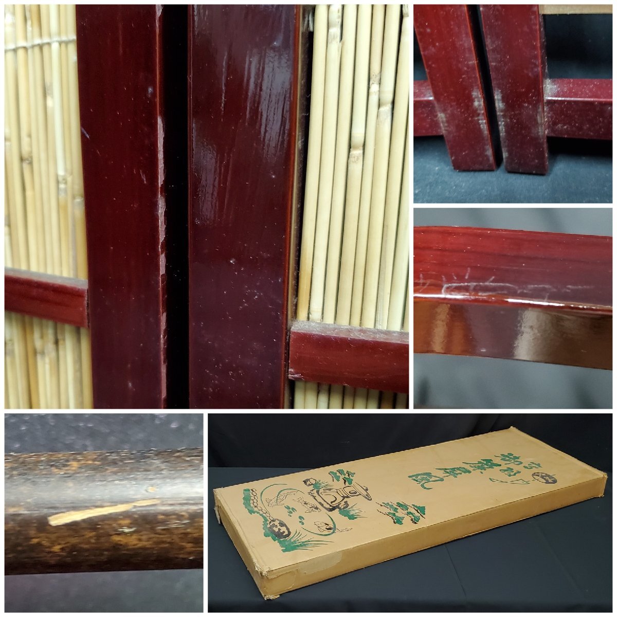 Product name: 【宝蔵】木彫透かし飾り 御簾屏風 夏屏風 折りたたみ 4連衝立 間仕切り 高さ約120.5cm 和室インテリア